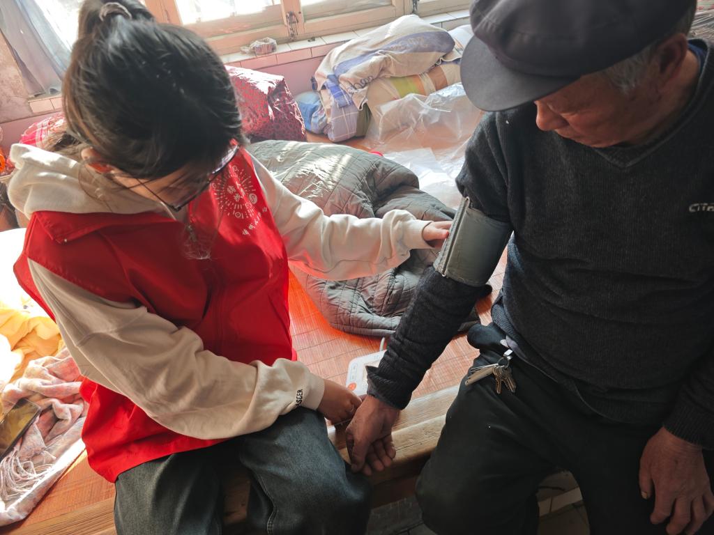 为关心关注关爱老人,弘扬尊老传统美德,实践队成员来到了山东省潍坊市诸城市李家潘旺村。在村书记的带领下,成员们来到了孤寡老人家中,与老人亲切交谈,耐心倾听他们讲述过去的故事,仔细询问他们的生活状况和身体情况。通过与老人的交流交谈,实践队成员拉近了与老人的心灵距离,营造了充满欢声笑语的和谐氛围。成员们为老人打扫房间、整理家务,关注老人身体健康,为他们测量血压,耐心劝告他们关注身体状况,保持身体健康。还为老人精心准备了文艺表演,一首首经典老歌、一段段欢快舞蹈,逗得老人们喜笑颜开。同时,成员们为老人带去了生活必需品,如米面粮油、水果、保暖用品等,温暖了老人们的心。其中,成员在与一位奶奶的聊天中得知她的子女都在异地工作,奶奶激动地说:“你们能来看我,我真的特别高兴,感觉心里暖暖的!”
