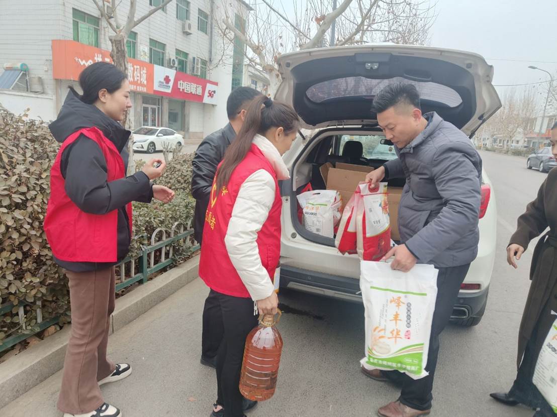 活动当日,晨光熹微,实践队员们精神抖擞地开始工作。大家分工明确,有的实践队员负责协助社区工作人员将慰问物资有序地搬上车,有的实践队员则负责与社区工作人员进行对接,为即将开始的慰问之旅做好了准备。冬日清晨丝丝寒意盖不住实践队员们热情的心,每位实践队员脸上都洋溢着温暖的笑容。