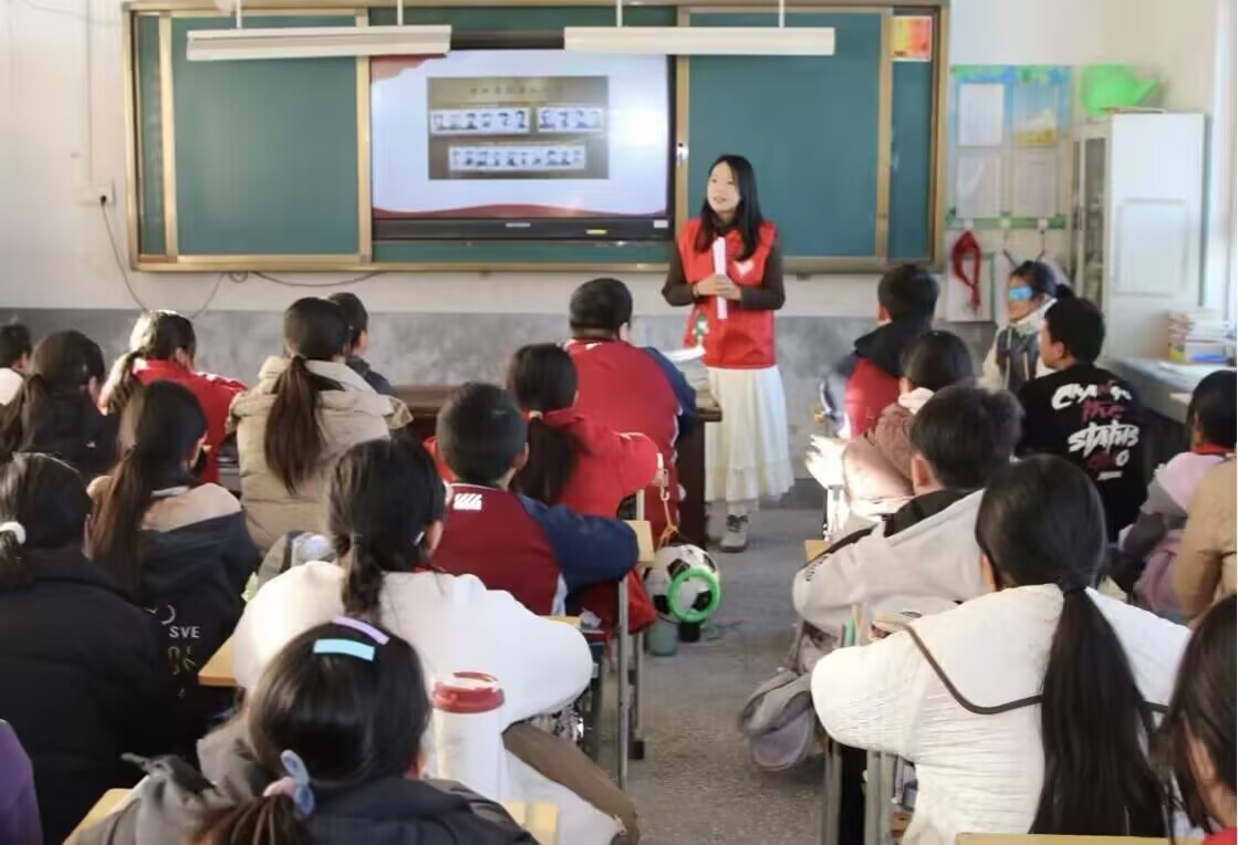 党史是最好的教科书,蕴含着生生不息的思想力量、文化基因、精神动能。习近平总书记也曾在党史学习教育动员大会上强调:“抓好青少年学习教育,让红色基因,革命薪火代代传承。”为进一步弘扬红色文化,传承革命精神,厚植中小学生的爱国情怀,引领不同年龄段的青少年扣好人生的第一颗扣子,实践队员们来到保定市第七中学,为同学们上了一节别开生面的党史课,详细叙述了共产党人的奋斗历程。首先进行的是“红色影片大家看”的环节,让同学们深刻了解中国共产党在带领人民前进的光辉历史上所取得的辉煌成就,身临其境的感悟老一辈革命家的精神风范,切身体会到西柏坡精神的内核。然后实践队员们展开“党史知识大家答”的环节,以党史知识问答的形式展示党的光辉历史与伟大成就,反映党领导各族人民进行革命、建设和发展的历史进程,促进同学们加深对革命精神的了解和感悟,推动同学们做到学史明理、学史崇德、学史增信、学史力行。最后,实践队员们进行“红歌大家唱”环节,全体师生合唱《没有共产党就没有新中国》,用歌声颂扬党的光辉历史,缅怀党的丰功伟绩,继承和发扬党的优良传统,让同学们感党恩、知党情、听党话、跟党走,传承革命精神,砥砺奋斗。
