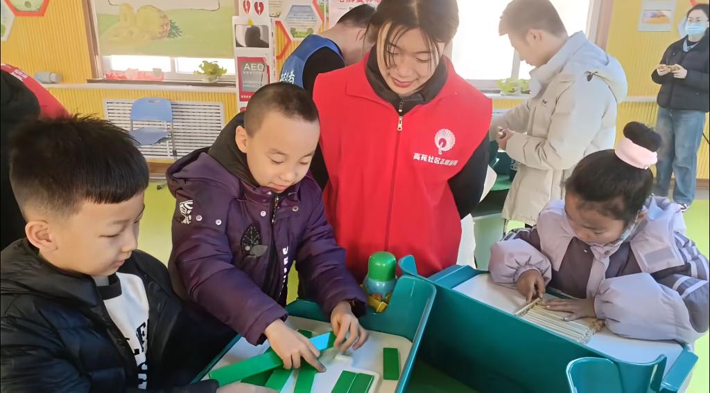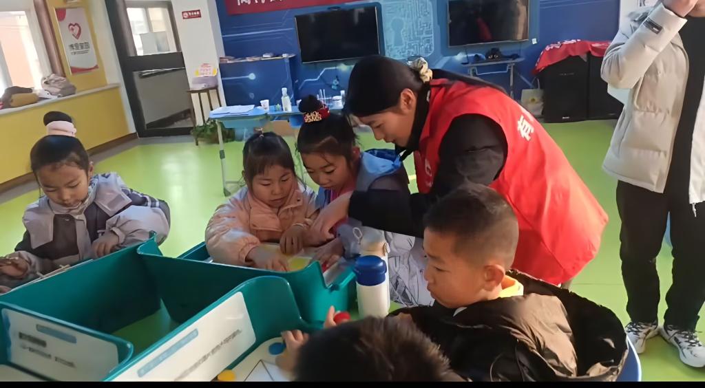 完成科学实验的讲解后,实践队员们陪伴孩子们玩起了小游戏。在游戏环节,实践队员们精心设计了一系列有趣且富有教育意义的游戏。如“科学知识问答接龙”“科技词语猜猜猜”“合作搭建科学小模型”等。像“合作搭建科学小模型”游戏需要孩子们分组合作,利用积木、吸管等材料搭建出各种科学小模型,如桥梁、机器人等。在搭建过程中,孩子们充分发挥自己的创造力和想象力,共同商讨搭建方案,分工协作完成任务。实践队员们为孩子们讲解游戏规则,在孩子们遇到困难时帮助他们。这个游戏不仅锻炼了孩子们的动手能力和空间想象力,还让他们体会到了团队合作的力量。