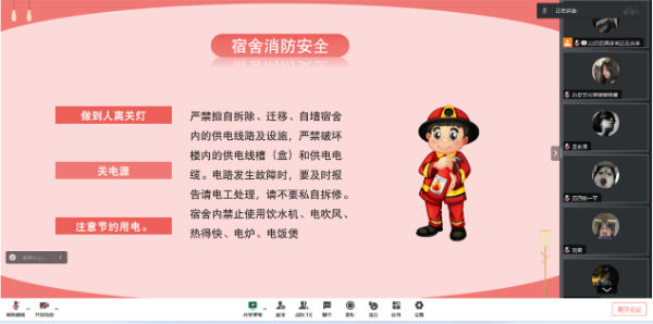 本次活动围绕宿舍消防安全教育主题,采用主题团日线上会议的形式对成人短视频 学生进行全面的教育宣传。会议中,主持人通过生动详实的PPT,讲解了宿舍的火灾隐患,着重强调了学生宿舍火灾预防措施以及遇到火灾的处理方式。在最后的答疑环节中,同学们积极互动,提出疑惑,主持人耐心解答,现场气氛活跃。