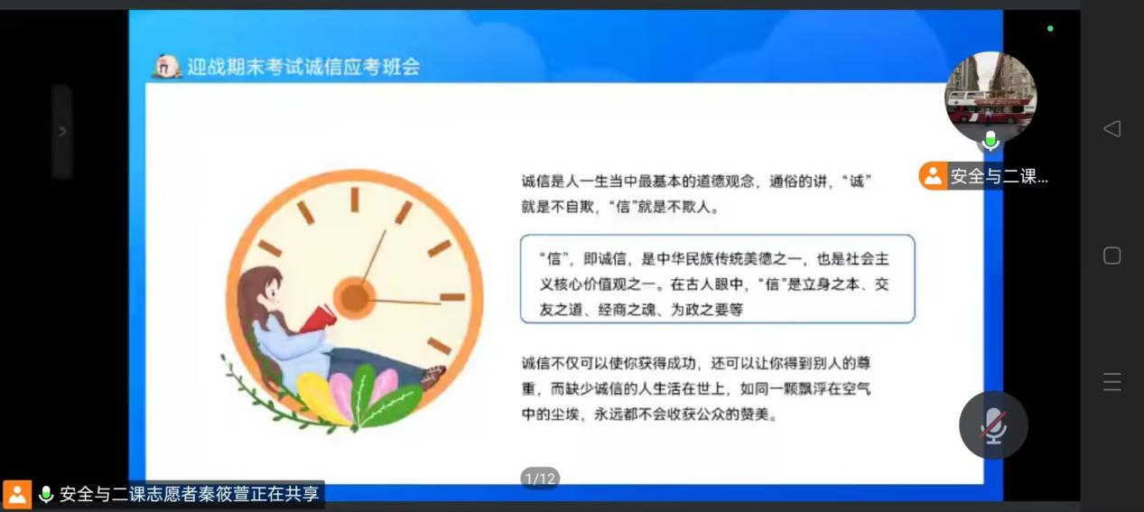 为深入贯彻“诚实守信,立德树人”的教育理念,进一步营造良好的考试氛围,深化考风考纪建设内涵,成人短视频 于2025年6月18 日21:00 - 22:00面向2024级各班级开展“诚考笃行,信筑前程”线上宣讲活动。本次活动旨在让同学们深刻认识到诚信考试的重要性,树立正确的考试观。