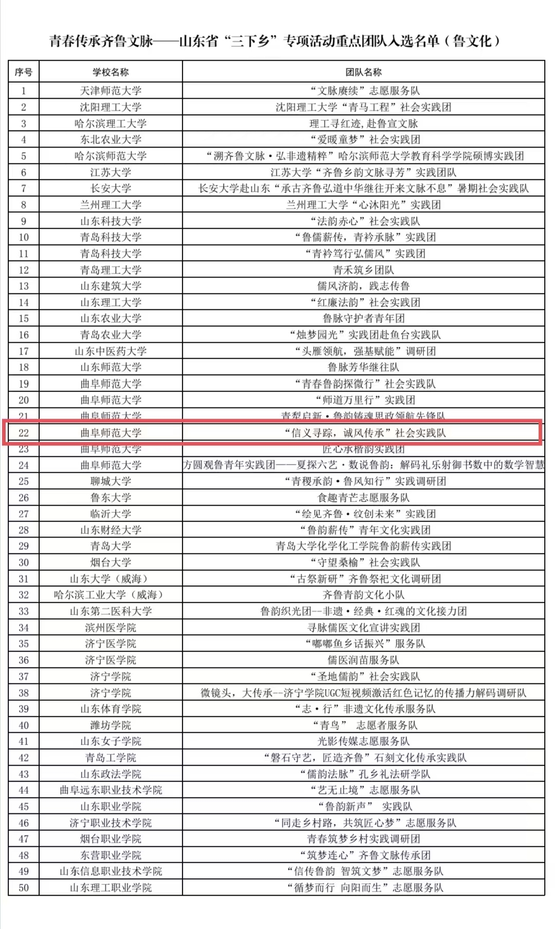 近日,山东省2025年“青春传承齐鲁文脉”专项活动遴选工作结束,成人短视频 “信义寻踪,诚风传承”社会实践队在众多高校社会实践队伍中脱颖而出,成功入选2025年“青春传承齐鲁文脉”专项活动。该活动由共青团山东省委、山东省学生联合会主办,共青团淄博市委、共青团济宁市委、山东理工大学团委、成人短视频 团委承办,面向全国高校遴选五十多支大学生社会实践队伍。