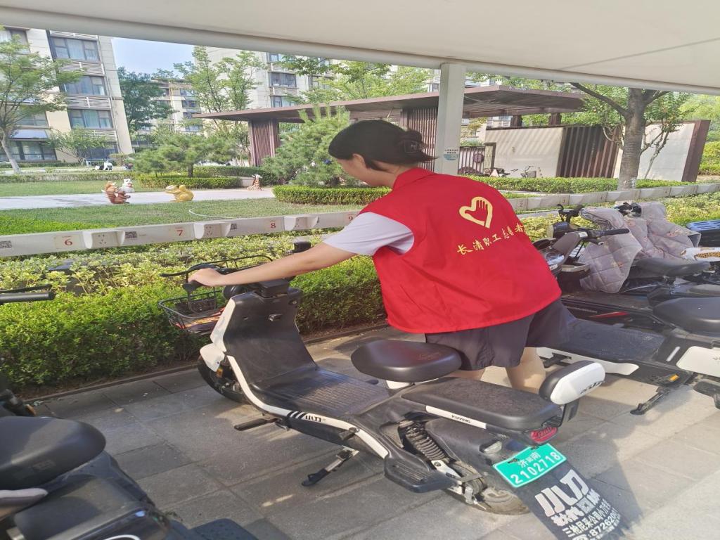 作为城市中人员密度较大且居民年龄结构相对比较稳定的特定地区,社区内部的车辆摆放可谓是影响着每个社区居民的生活质量,尤其对于一些行动不便的老年人来说,车辆的胡乱摆放可能成为他们出行路上一道难以搬动的障碍。当然车辆的胡乱摆放也同时给小朋友们带来一些安全隐患。因此,春藤计划实践队成员们在征求小区物业相关人员以及居民意见后进行了车辆的整理摆放,首先集中清理“僵尸车”与占道车:对长期无人使用、布满灰尘的“僵尸”自行车、电动车进行登记、拍照,并张贴挪车通知。对于通知期满仍无人认领的车辆,协助物业进行集中清理存放,腾挪宝贵空间。同时,对堵塞消防通道、单元门、主干道的车辆,实践队成员耐心寻找车主或张贴温馨提示,劝导其立即挪移。