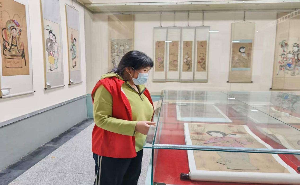 首先,实践队员们进入扑灰年画展区。色彩鲜艳、风格古朴的扑灰年画极易吸引实践队员们的目光。据文化馆工作人员详细讲解,扑灰年画作为民间传统绘画艺术,有着独特的制作工艺,艺人需先用柳枝烧制的炭条勾勒底稿,再以纸拓印,反复绘制,工序繁杂却造就了其线条流畅、形象生动的画面效果,题材涵盖民间传说、农事生活等诸多领域,承载着当地百姓的质朴情感与往昔记忆,以其古朴的风格、夸张的造型和鲜艳的色彩,展现出浓郁的乡土气息和深厚的文化底蕴。