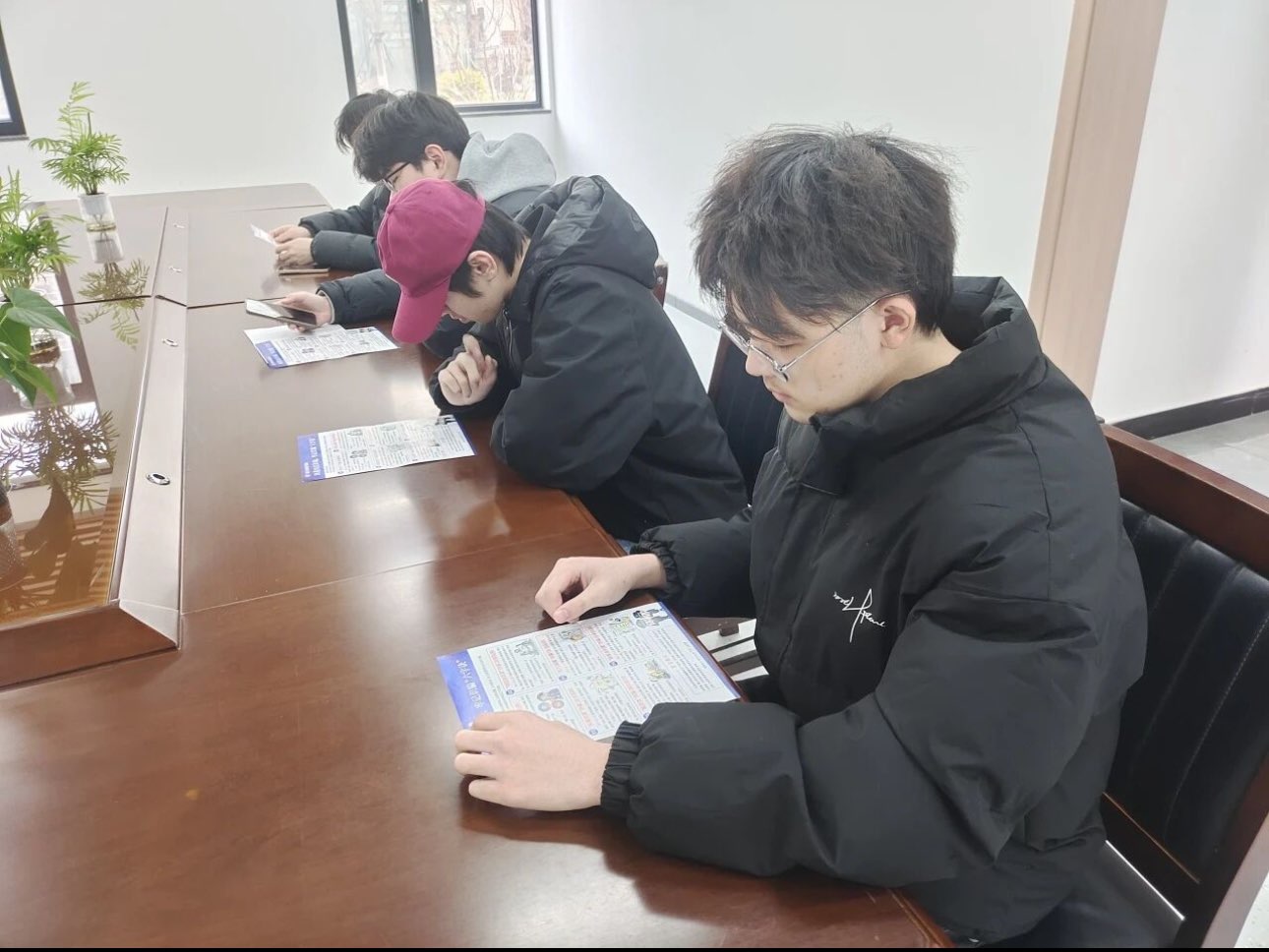 宣讲过程中,队员们还发放了精心制作的反诈宣传手册,手册上印有反诈二维码、典型案例图解及防骗口诀,方便大家随时学习、随时自查。在场人员认真研读手册,有的用手机扫码关注反诈平台,有的在重点内容处做标记,现场学习氛围浓厚。
