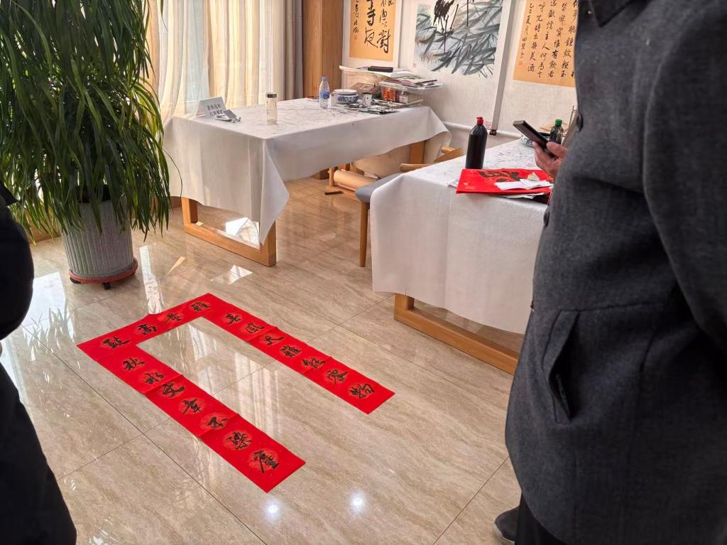 拿到墨迹未干的春联和福字后,居民们小心翼翼地将其晾干,脸上洋溢着幸福的笑容。“手写的春联才有真正的年味,贴在门上既喜庆又有意义,谢谢这些年轻的孩子们把祝福送到家门口。”一位社区居民捧着春联说道。