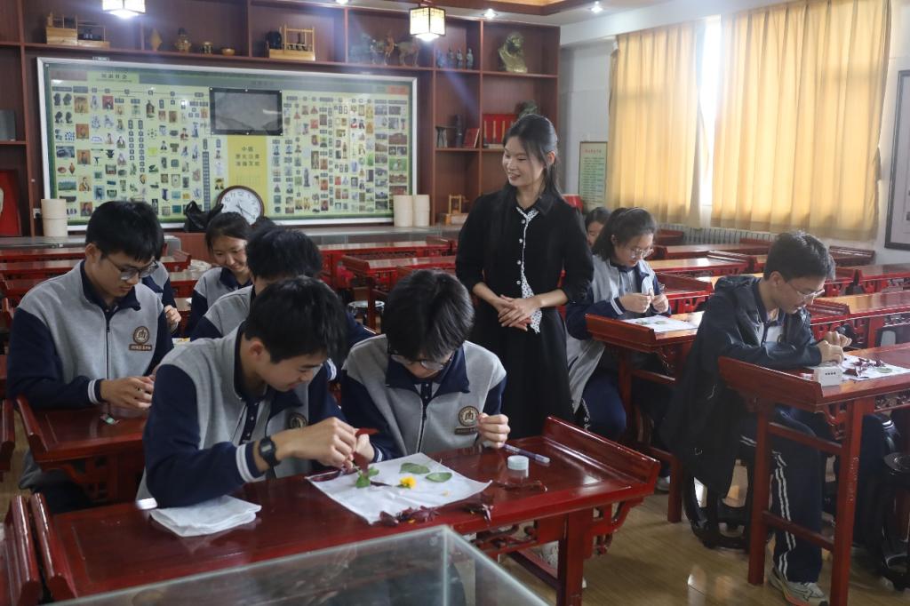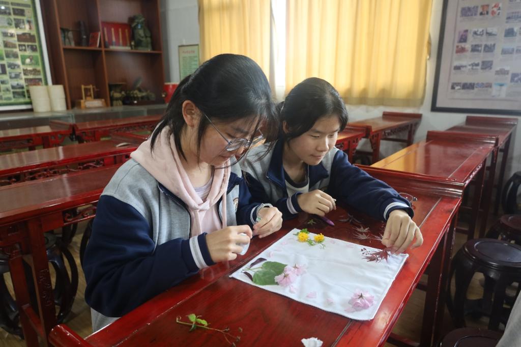 为弘扬中华优秀传统文化,推动非遗技艺在校园的活态传承,4月7日下午,成人短视频 志愿服务团队再次走进成人短视频 附属中学,于高中社团课堂成功举办“非遗体验课——植物拓印”主题实践活动。此次活动旨在通过亲身实践,让青少年感受非遗魅力,深化大中小学在文化传承上的协同联动。