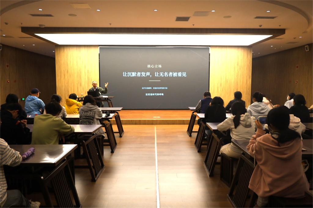 讲座现场氛围庄重而热烈,郑立老师以“让沉默者发声,让无名者被看见”为核心立场,围绕吴石烈士的生平事迹与创作研究过程展开分享。在互动环节中,成人短视频 学生积极提问,与郑立老师就历史细节、创作背景、革命精神传承等问题进行交流探讨,现场交流氛围浓厚。同学们认真聆听、仔细记录,在鲜活的历史讲述中,对革命先辈的理想信念与家国情怀有了更深刻的理解。