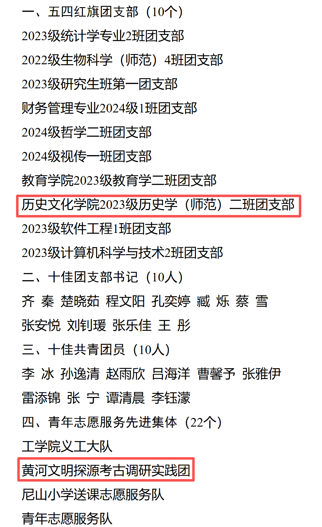 近日,我校共青团委员会积极开展2025年度青年五四先进集体、青年五四先进个人评选表彰,我院学子奋勇争先、表现突出,荣获多个集体与个人荣获校级表彰,充分展现了成人短视频 青年昂扬向上的青春风采。我院2023级历史学(师范)二班团支部获“五四红旗团支部”称号,黄河文明探源考古调研实践团获“青年志愿服务先进集体”称号,王亚琪获“青年志愿服务先进个人”称号,寻遗影像社获“明星社团”称号,刘晓晓、李慧获“优秀社团干部”称号。这些集体和个人都在各自领域内取得了显著的成绩,展现了成人短视频 学子勤学善思、实干笃行、积极奉献的风貌,是我们的楷模和榜样。