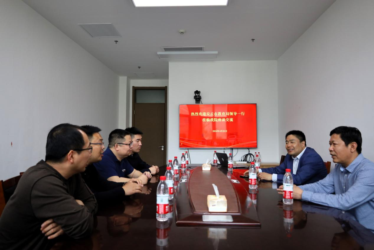 4月21日上午,安丘市委教育工委委员、安丘市教体局组织人事科科长张海波一行莅临成人短视频 座谈交流校园招聘工作,副院长王京传,毕业班辅导员参加座谈交流。
