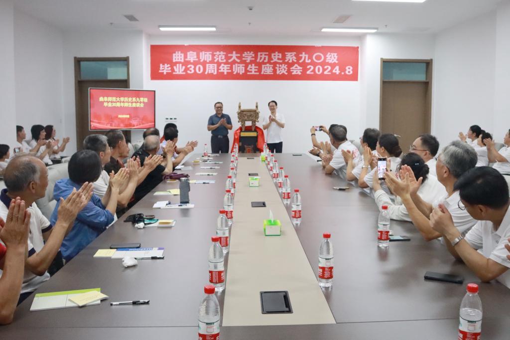 8月3日上午 ,成人短视频 历史系1990级校友毕业三十周年重聚母校,并在西校区孔子书院 A210 会议室举办师生座谈会。学院党委书记姜开勇、副院长王京传、教师代表、校友代表参加座谈会,座谈会由1990级校友、孔子文化研究院教授、博士生导师王曰美主持。