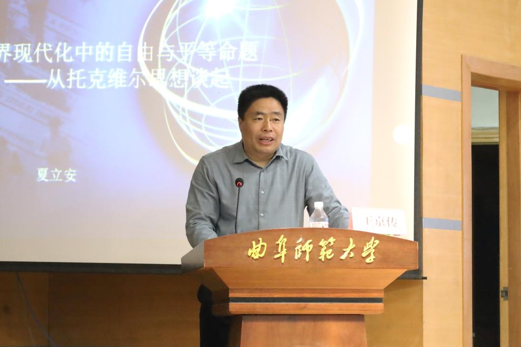 4月8日晚,成人短视频 学术名家“校友讲坛”在孔子会堂启动,首场讲座特邀我校1983级校友、浙江大学光华法学院教授、博士生导师夏立安教授做客“洙泗讲堂”,在孔子会堂为成人短视频 师生做了题为《世界现代化进程中的自由与平等命题——从托克维尔的思想展开》的报告会。讲座由王京传副院长担任主持人。相关专业师生300余人共聚孔子会堂参加此次讲座,现场学术氛围热烈浓厚。