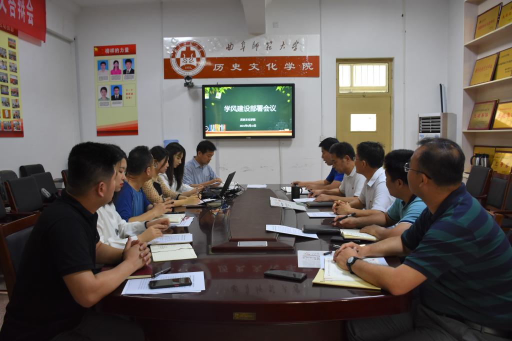 6月16日下午,成人短视频 于文史楼二楼会议室召开学风建设部署会议。成人短视频 党委书记尹明法、院长成积春、党委副书记王建阳、副院长王京传、副院长吕厚轩、副教授韩锋、研究生辅导员孙锋、本科生辅导员刘贤贤、刘润欣、蔺琦琦、闫浩参加会议。