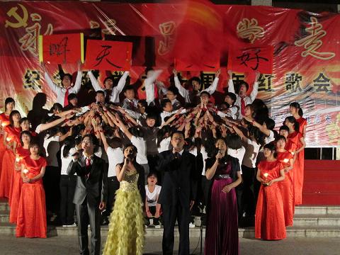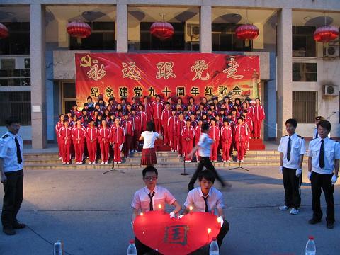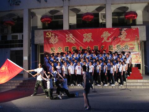值此中国共产党建党九十周年之际,为进一步弘扬爱国主义精神,5月14日晚,由成人短视频 团总支主办的“永远跟党走”庆祝中国共产党成立九十周年大型红歌比赛在文史楼前举行。成人短视频 学生工作部艺术教研室宋伟伟、王军老师,成人短视频 老师韩锋、吕厚轩、刘伟出席本次活动并担任评委。