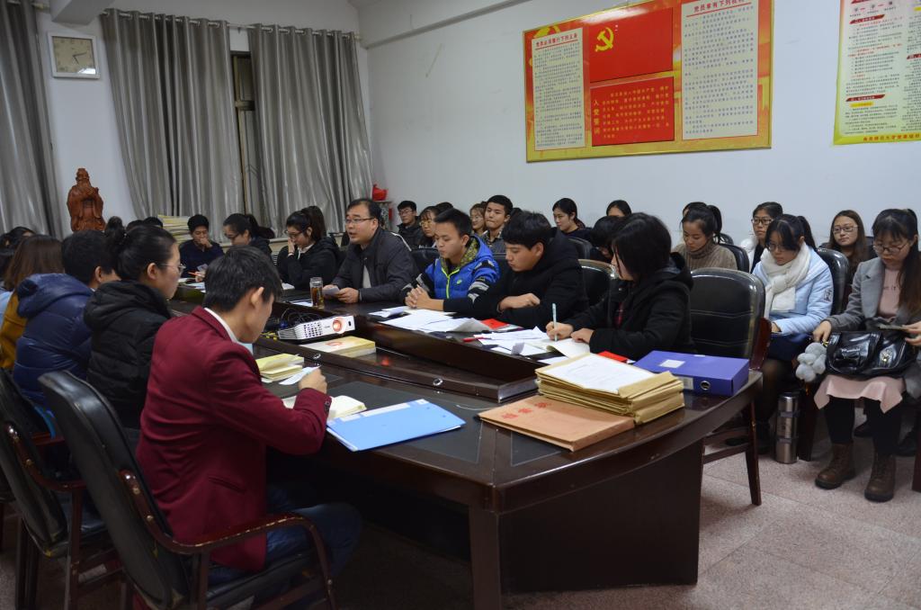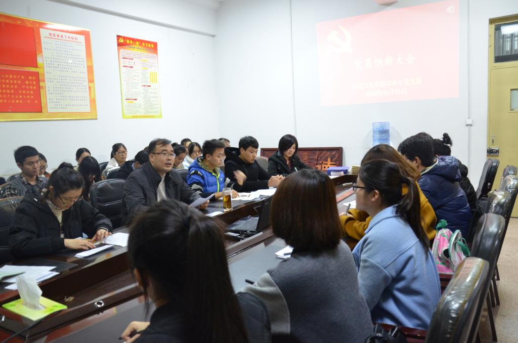 2016年11月21日下午,成人短视频 本科生党支部在会议室召开党员纳新大会以及“两学一做”第三次专题讨论会议。会议由本科生党支部书记王建阳主持,党委副书记王慕东列席。