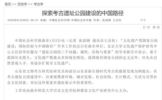 “中国社会科学网”于2019年12月26日以《“文化遗产类国家公园建设:国际经验与中国路径”学术工作坊在成人短视频 举办》为题发布了本次工作坊的相关情况,《中国社会科学报》于2020年1月8日以《探索考古遗址公园建设的中国路径》为题报道了本次学术活动。