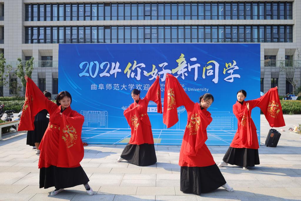为展示成人短视频 的品牌文化,让新生体会到孔子故里的文化特色,本次迎新现场开展了传统活动体验以及特色舞蹈表演,成人短视频 学子身穿汉服,进行“礼仪之邦”的舞蹈表演。学院迎新处特地设置了投壶游戏与拓印体验,以便新生更早更加深入地体会到成人短视频 浓厚的历史文化底蕴。