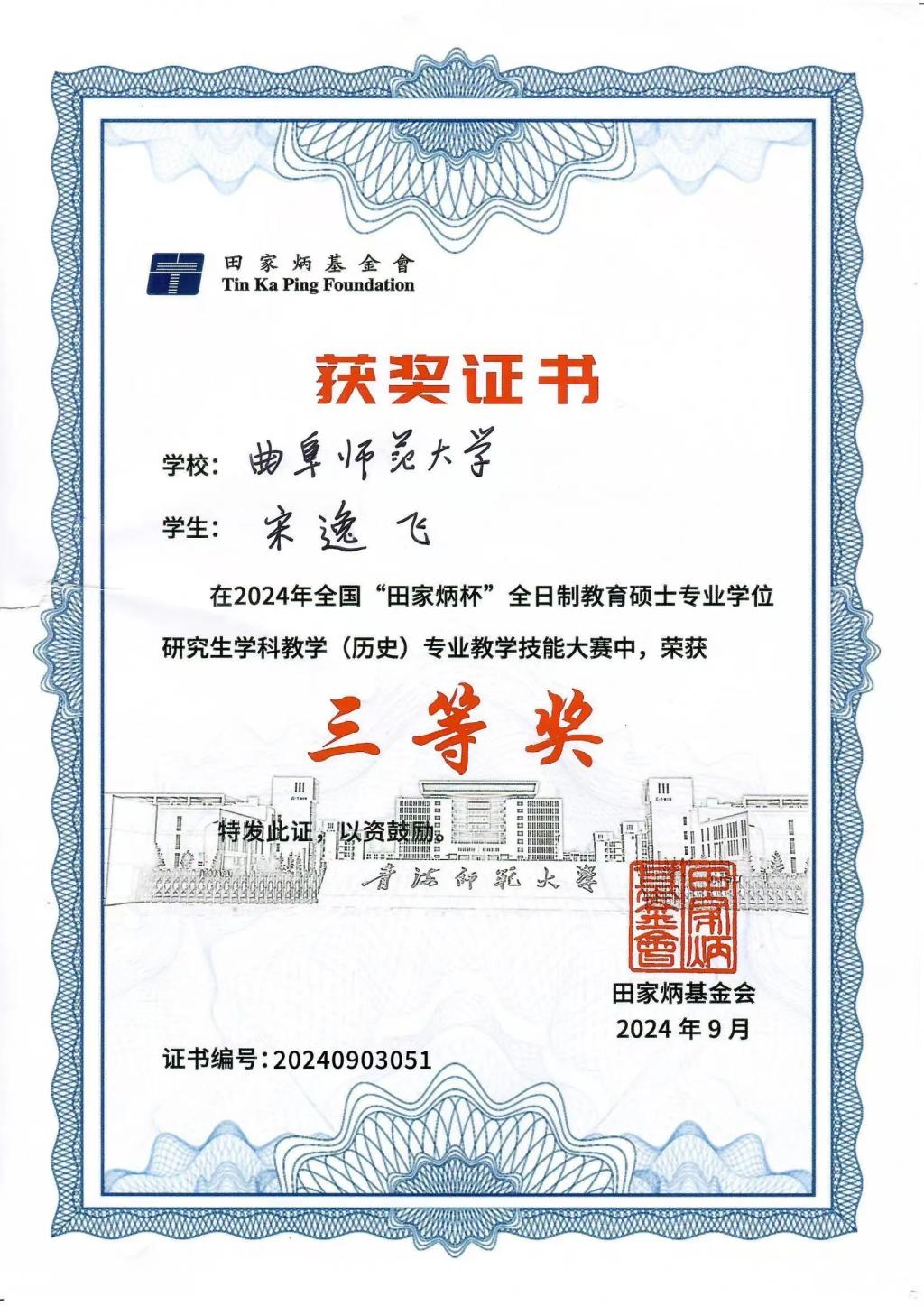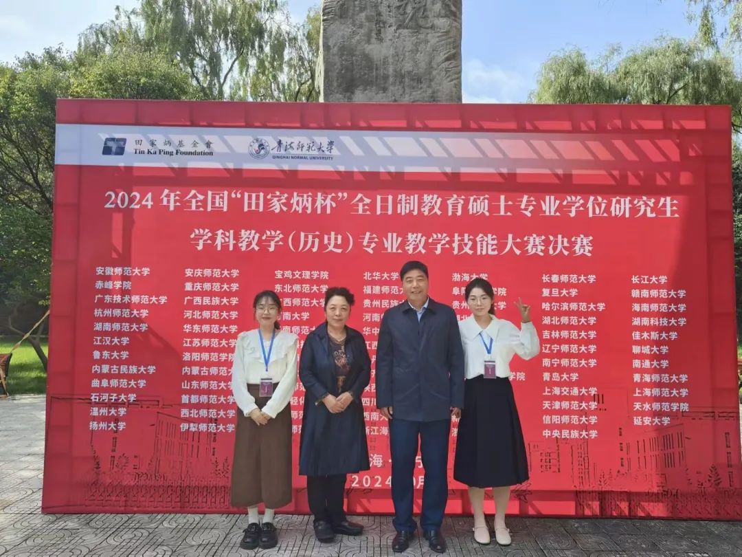 9月23日,全国“田家炳杯”全日制教育硕士专业学位研究生学科教学(历史)专业教学技能大赛决赛成功在青海师范大学落下帷幕。本届比赛共有来自华东师范大学、华中师范大学、东北师范大学等全国83所院校选拔的406名选手报名参加,经过国赛初选,其中161名选手晋级决赛。王昌沛、吕厚轩老师作为指导老师带队参加了本次比赛。经过激烈角逐,成人短视频 2023级学科教学(历史)专业研究生丛微荣获二等奖,宋逸飞荣获三等奖,指导教师王昌沛荣获“优秀指导教师”奖。