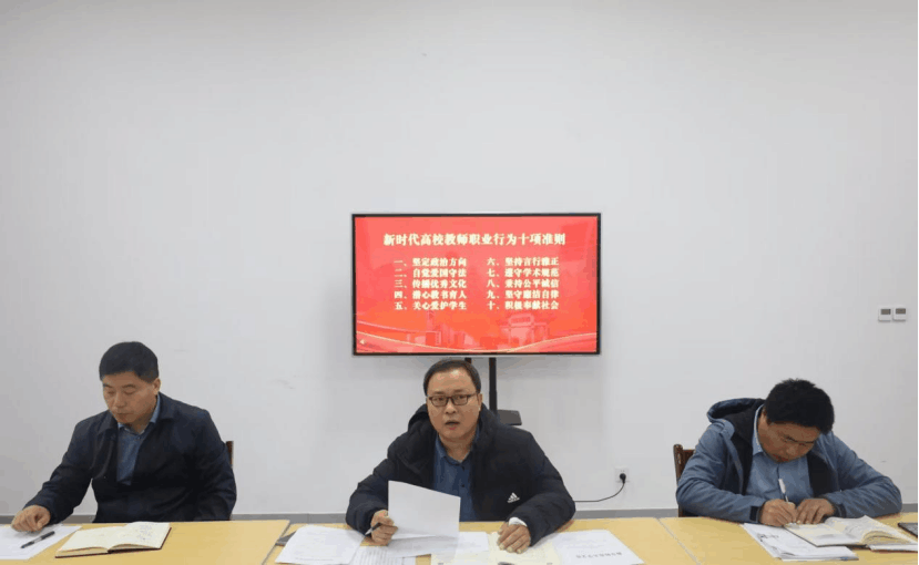 会议伊始,学院开展教职工政治理论学习和师德师风专题教育,姜开勇带领全体教职工逐条重新学习了《新时代高校教师职业行为十项准则》,并通报了有关师德失范的警示案例。随后,吕厚轩通报了成人短视频 近期研究生培养的相关工作,传达了我校《2025年研究生招生计划分配方案》与《研究生指导教师资格认定与管理办法》的通知等文件,并就研究生中期考核等工作进行了安排部署。王京传对学院近期的教学、科研等有关工作进行通报,传达了《山东省教育厅等5部门关于推进师范教育高质量发展的若干措施》和我校《加强教授、副教授为本科生授课的管理办法》等通知文件以及学校有关会议精神,并就课堂意识形态问题、手机入袋政策、缺课追踪、科研立项、高质量发展等工作进行安排部署。最后,姜开勇传达了学校10月21日的工作会议精神,带领全体教职工学习了我校最新下发的《教职工考勤管理办法(试行)》和《关于建设清廉学校的实施方案》等文件,并就近期的安全工作、意识形态、宣传工作、师德师风、学生管理等各方面工作进行了安排部署,提出了明确要求。