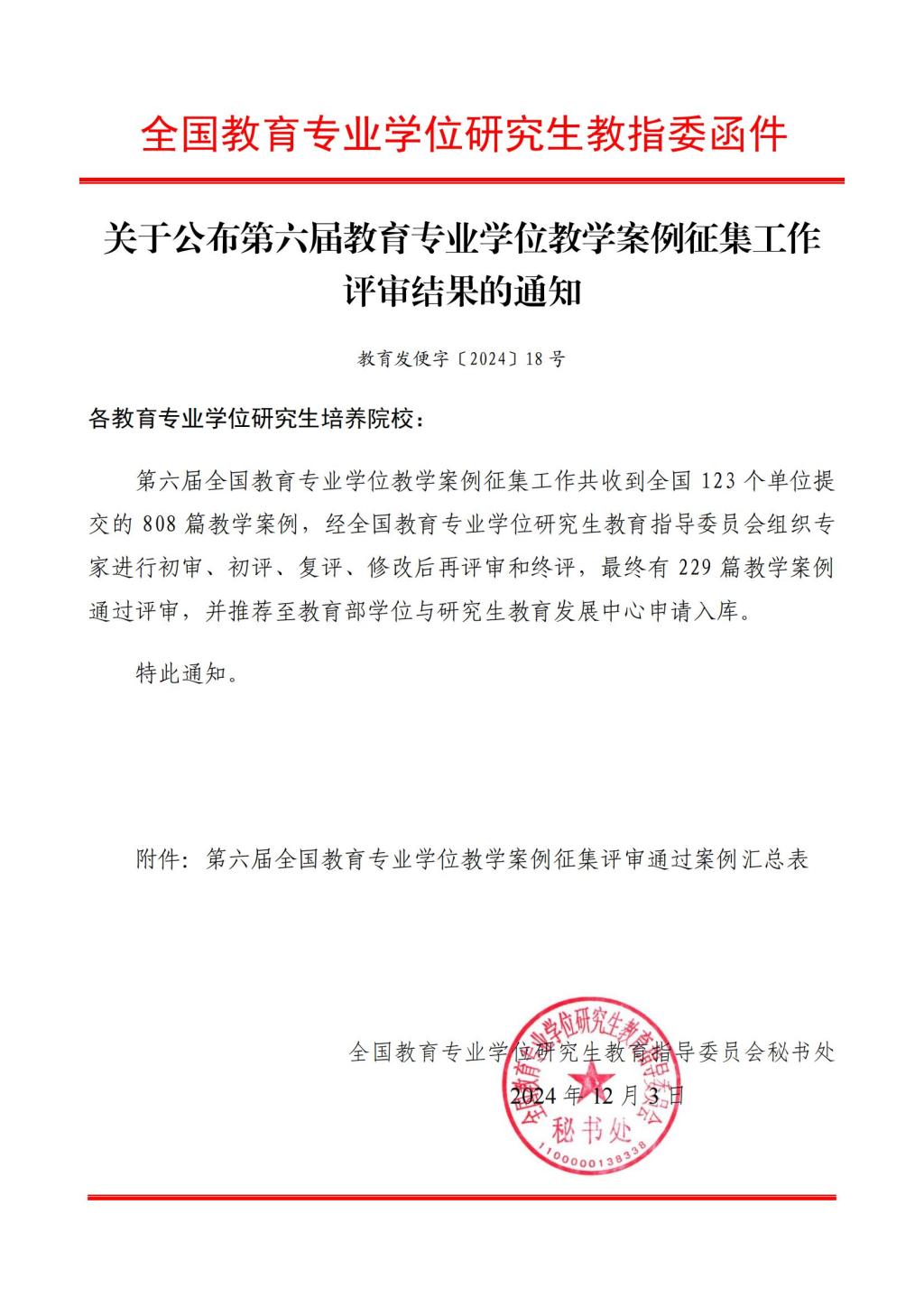 此次教学案例的成功入选,不仅是全国教育专业学位研究生教育指导委员会对成积春教授及其团队教学研究成果的认可,也是对成人短视频 教学改革和研究生培养工作的肯定。成人短视频 将继续致力于提升教育专业学位研究生培养质量,为国家培养更多优秀的教育专业人才。