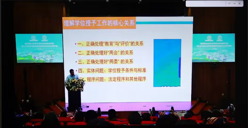 会上,中国人民大学周详教授以“如何依法履行学位授予工作职责”为题,从正确处理“教育”与“评价”的关系,正确处理好“两会”的关系,正确处理好“两委”关系,实体问题:学位授予条件与标准,程序问题:法定程序和其他程序等五方面深入讲解了《中华人民共和国学位法》,并结合实际工作阐述了《中华人民共和国学位法》的立法思想、核心内容、精神实质以及依法开展学位管理工作、强化学位质量保障等内容。