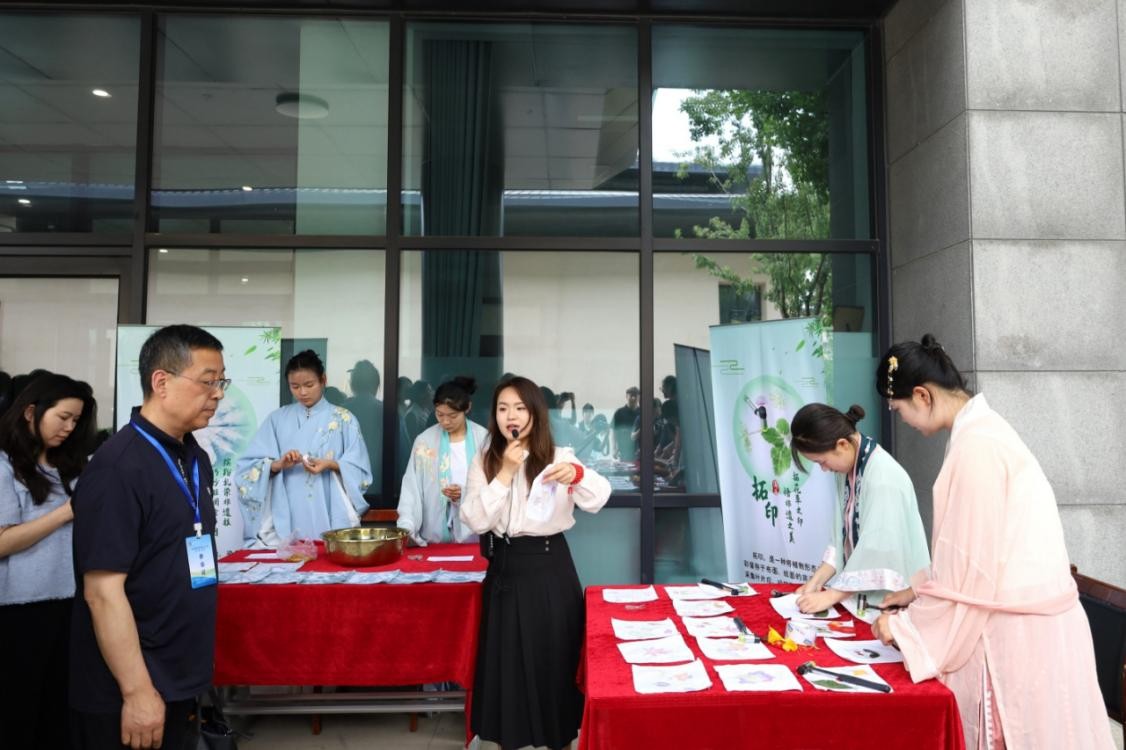 活动中,成人短视频 大学生传统礼仪研修中心为观摩团展示了中华传统迎宾仪。王建阳围绕学院八个辅导员工作室的建设方向与“五暖”资助育人实践为大家作了讲解。夏金金介绍了成人短视频 共享书架区域与资助育人成果和典型案例,重点讲解了共享书架区域在助力家庭经济困难学生自我教育、自我管理、自我服务、自我提升中的作用。参与活动的学生代表向观摩团现场展示了茶艺、书法、香囊制作、螺钿工艺、扎染、拓印、干花团扇等融合传统文化与资助育人的特色项目。