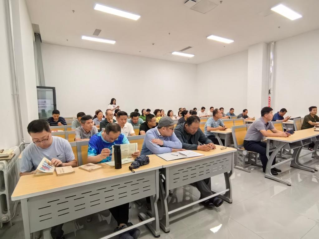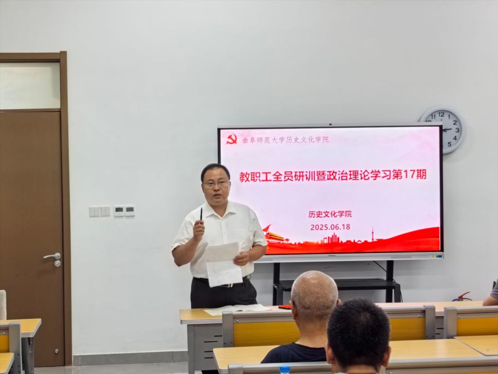 2025年6月18日下午,成人短视频 在孔子书院B120教室举行教职工全员研训暨政治理论学习第17期活动。活动由学院党委书记姜开勇主持,学院党委学习委员孙锋领学,在校教师近60人参加研训。