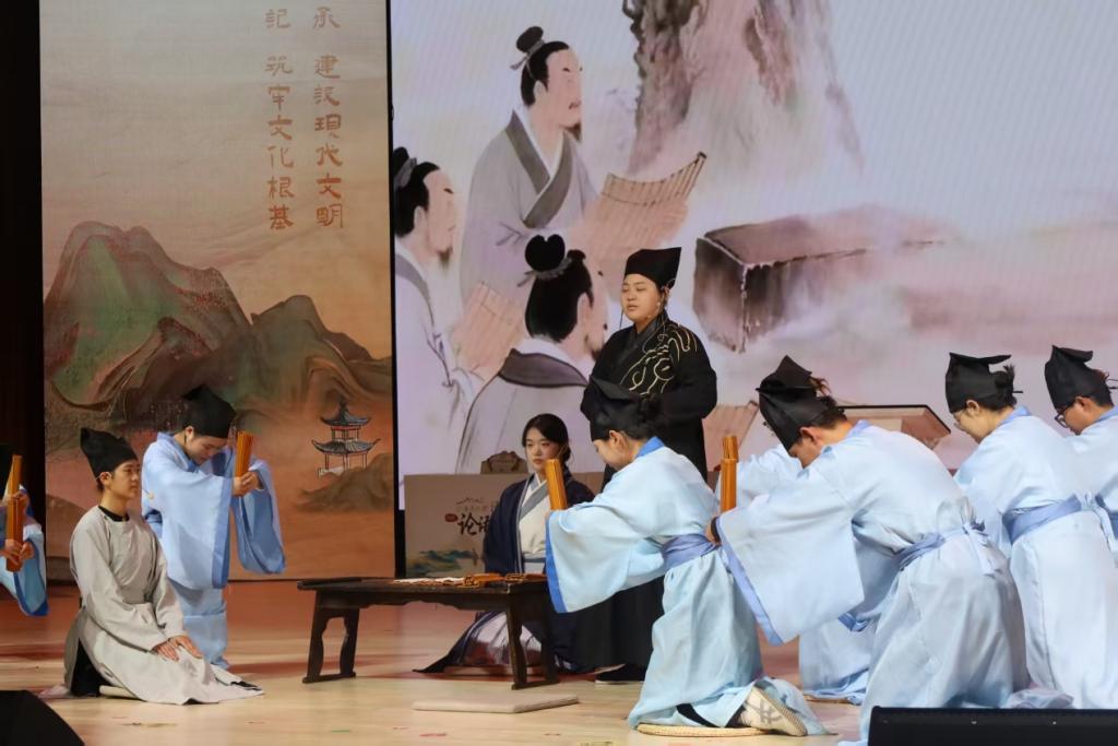 比赛过程中,成人短视频 学子展现出扎实的经典素养与生动的诠释能力。在“了如指掌”和“当仁不让”两个环节中,由窦衍洁、林亚蕊、朱韬伊三名同学组成的代表队引经据典、踊跃抢答,以扎实的学识和清晰的逻辑赢得了两个环节的最高分。在“游于艺”环节中,21名同学倾情演绎情景剧《贫而非窘》,生动塑造了子贡“贫而无谄”的君子形象,并庄重还原古代拜师场景,深刻诠释了“礼之用,和为贵”的文化内涵。整场表演编排精巧、情感真挚,赢得现场评委与观众的一致好评。