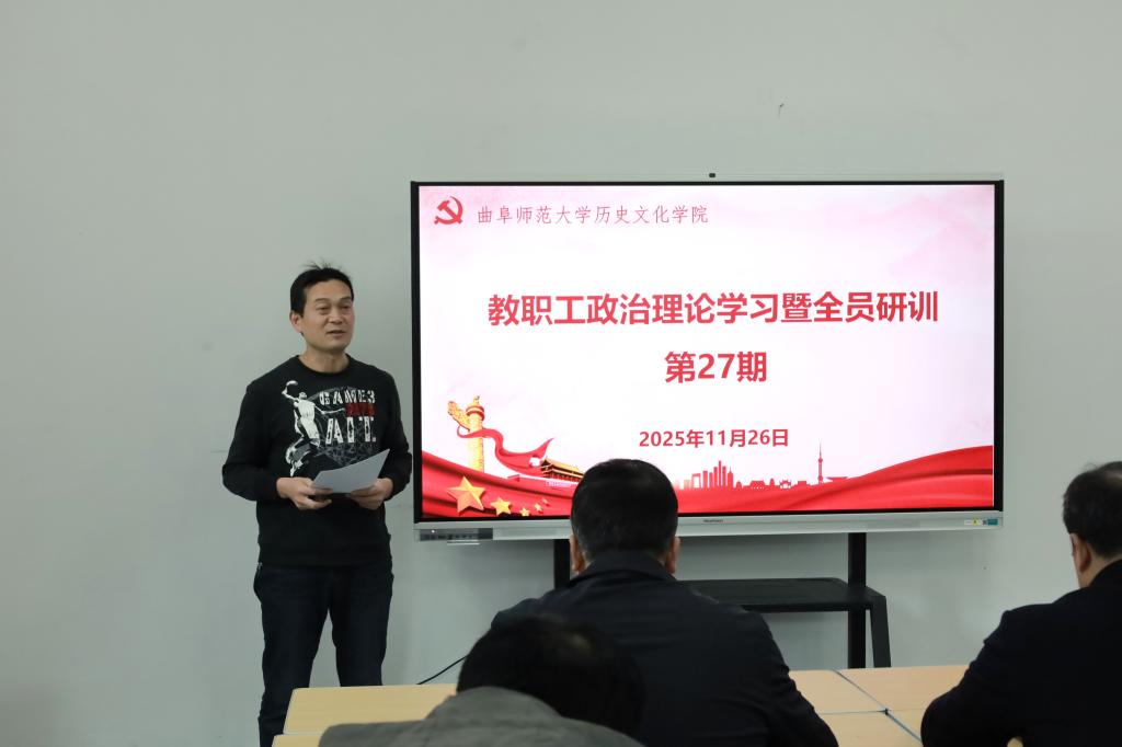 2025年11月26日下午,成人短视频 在孔子书院B106教室举行教职工政治理论学习暨全员研训第27期活动。活动由党委学习委员孙锋主持并领学,学院在校教职工60余人参加活动。