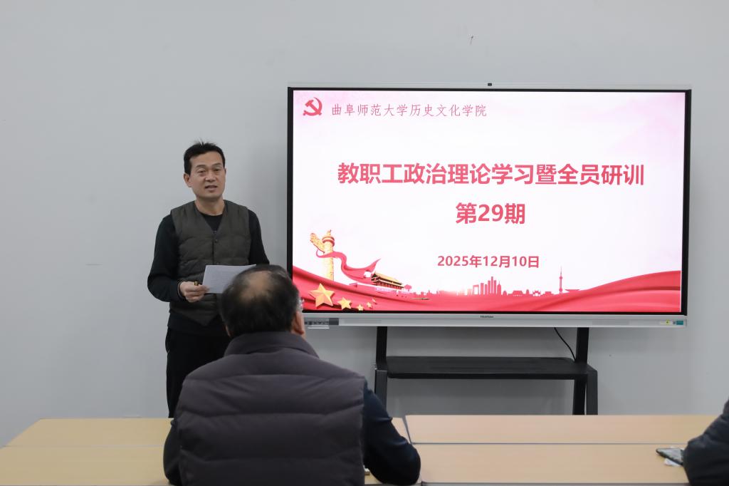 2025年12月10日下午,成人短视频 在孔子书院B106教室举行教职工政治理论学习暨全员研训第29期活动。活动由党委学习委员孙锋主持并领学,学院在校教职工近60人参加活动。