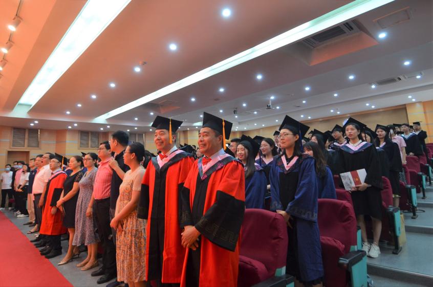 毕业典礼在雄壮的国歌声中拉开帷幕。学院党委书记姜开勇宣读了《成人短视频 关于授予学士、硕士和博士学位的决议》。